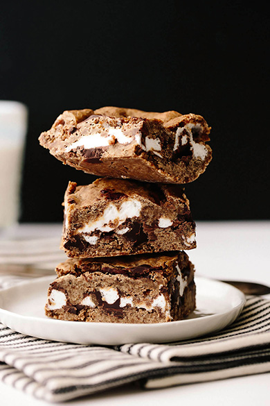 Take the traditional campfire treat to a new level with these vegan and gluten-free treats by Blissful Basil. Rich, dark chocolate and chewy marshmallows are sandwiched between layers of sweet graham-cracker-and-cookie crust in these amazing bars.